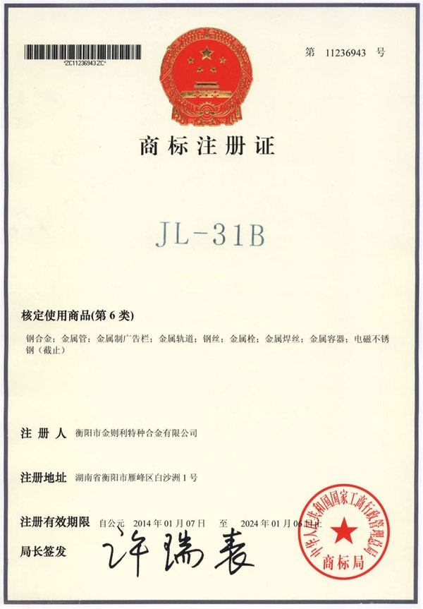 衡陽(yáng)市金則利特種合金股份有限公司成立于一九九九年十二月,注冊(cè)資本人民幣兩千兩百萬元。注冊(cè)地址:衡陽(yáng)市雁峰區(qū)白沙洲工業(yè)園長(zhǎng)塘路2號(hào)。公司主營(yíng)耐蝕軟磁合金,為湖南省高新技術(shù)企業(yè)。公司自成立以來,即致力于耐蝕軟磁合金的研發(fā)。 研制出的JL-31(00Cr13si2Pb)、JL-31B(00Cr13si2)、JL-31BS(00Cr13Si2S)、JL-37B(0Cr17Si2)、JL-37(0Cr17···